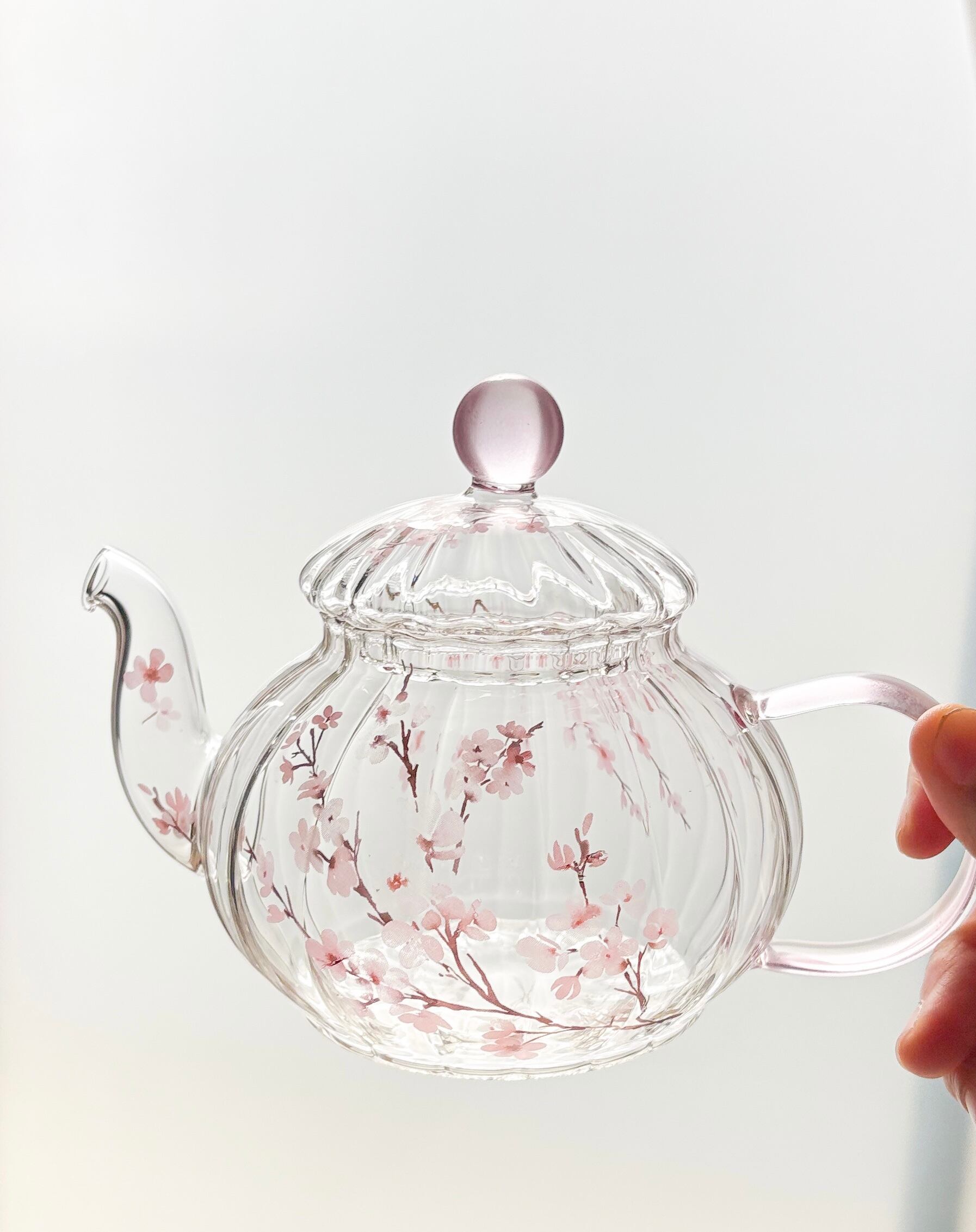 春の訪れを感じさせる「桜のガラスティーポット」です。